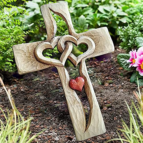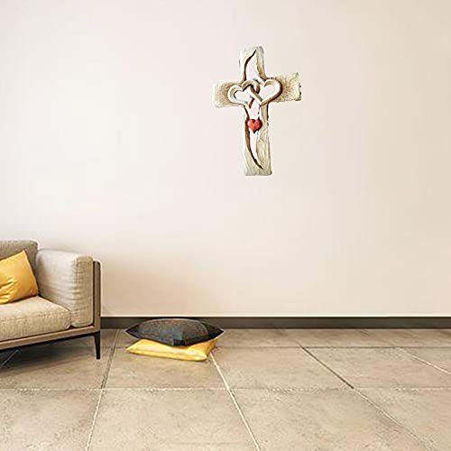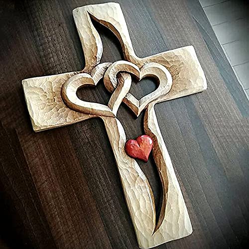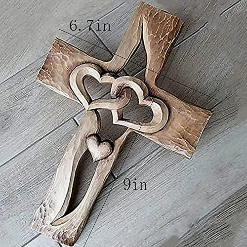 Amugo Gesneden houten kruis-verweven hart, houten liefdeskruis, handgesneden antiek ontwerp houten kruis muur opknoping, huis woonkamer, vakantie decoratie (stijl1)