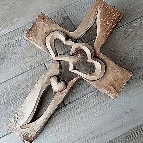 Specification: Amugo Gesneden houten kruis-verweven hart, houten liefdeskruis, handgesneden antiek ontwerp houten kruis muur opknoping, huis woonkamer, vakantie decoratie (stijl1)