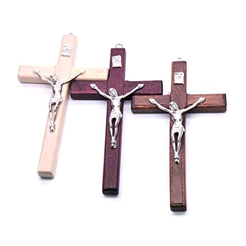 Specification: GASSDINER 5 stks Houten Christus Jezus Kruis Lijden Standbeeld Religieus Gebed Kruisbeeld Opknoping Hanger Hand Holding Sieraden