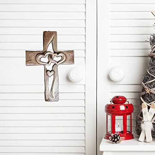Specification: Geschenken Houten Muur Cross Plaque,20141cm Opknoping met Hand Gesneden Bloemen Ontwerp Religieus Altaar Thuis Woonkamer Decor Lichtgewicht, Verweven Harten Acryl Liefde Kruis Decor