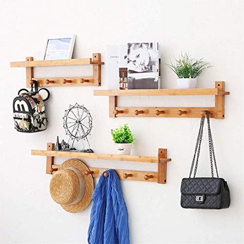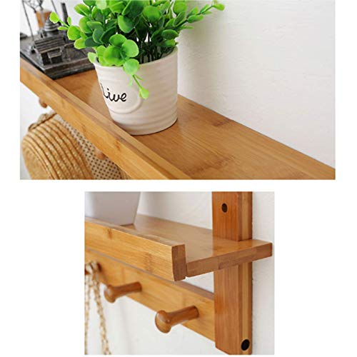 HJW Praktische opbergrek Bamboe Hangende Entryway Plank met Haken Slaapkamer, Hal, Kantoor, Woonkamer, Keuken Opbergrek Display 1Huiyang-01020, Natuurlijk, 5 Haken – 72 Cm X 18 Cm