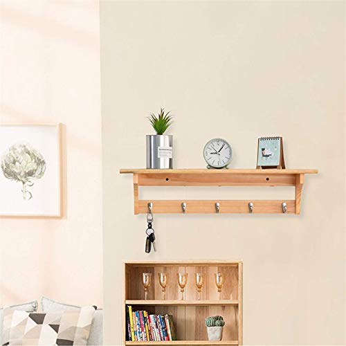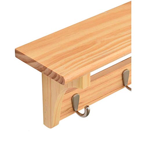HJW Praktische opbergrek Handgemaakte Hangende Entryway Plank met Haken Kapstok, Wandplank Opbergstandaard voor Hal Woonkamer Slaapkamer Display 1Huiyang-01020, Natuurlijke, 61cm