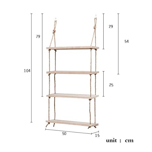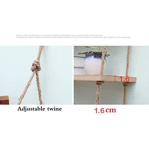 Specification: HJW Praktische opbergrek Punch-Free drijvende plank opknoping rek, houten wandhouder opbergstandaard voor fotolijst boek plant pot henneptouw decoratieve wandplank 1Huiyang-01020,3 tier