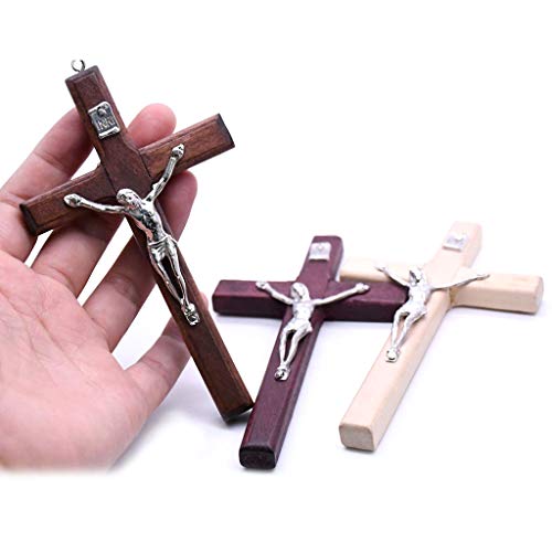 Specification: HLLR 5 stks Houten Christus Jezus Kruis Lijden Standbeeld Religieus Gebed Kruisbeeld Opknoping Hanger Hand Holding Sieraden