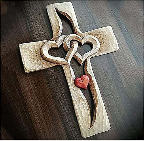 Specification: Houten gesneden kruis, verweven hart, houten liefde kruis, handgesneden, Eros houten kruis, kerk wandkleden, huis geschenken, laat God getuige uw liefde