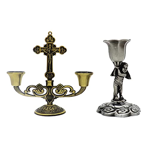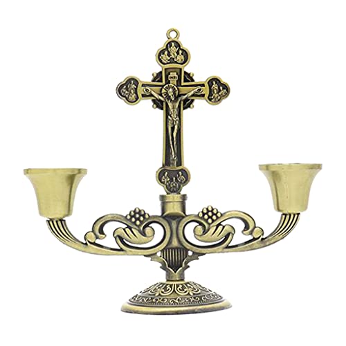 Specification: KOUJING Christian Katholieke Heilige Kruisbeeld Tafelstandaard Kandelaar met Handvat Metaal