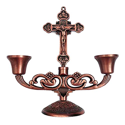 KOUJING Christian Katholieke Heilige Kruisbeeld Tafelstandaard Kandelaar met Handvat Metaal