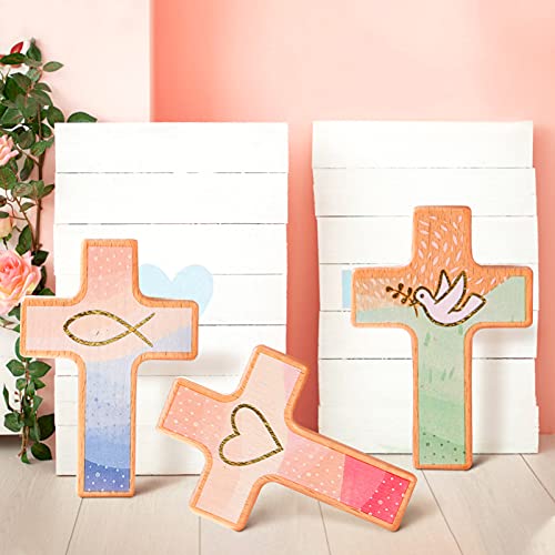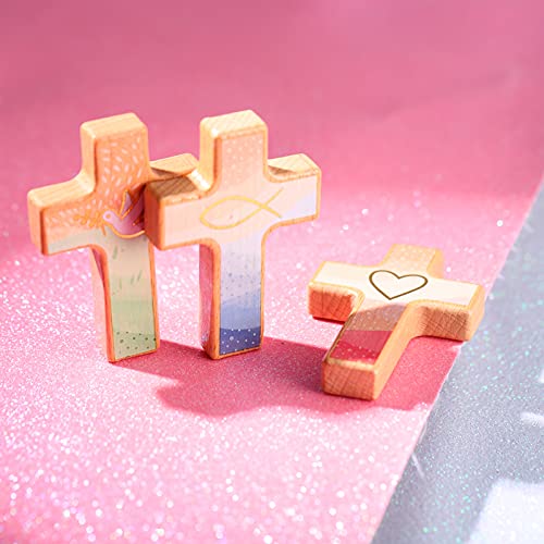 NOLITOY 3 stks Mini Christian Houten Kruis Ornament, Heilig Kruis voor Desktop Wanddecoratie