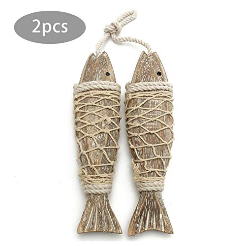 WOTEG Houten vis Decor Ornament, muur opknoping houten vis decoraties nautische strand thema muur ornament antiek handgesneden opknoping houten decoratie 2 stuks